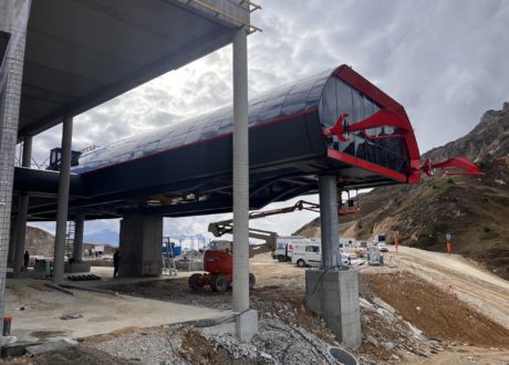 Les équipes poursuivent actuellement avec le montage des structures de garage à 2250 m d’altitude, la télécabine sera mise en service pour décembre 2025.