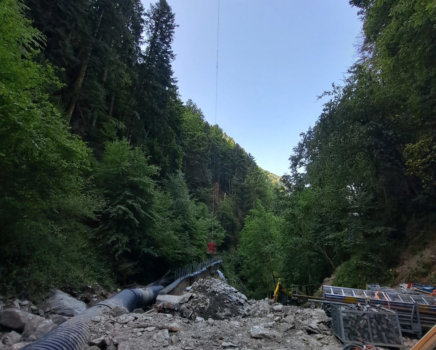 Nous avions moins de 2 mois à partir de la consultation pour réaliser les études, chiffrer, approvisionner et réaliser la reconstruction complète de ce mur d’entonnement pour lequel chaque acheminement de matériel se faisait via hélico.